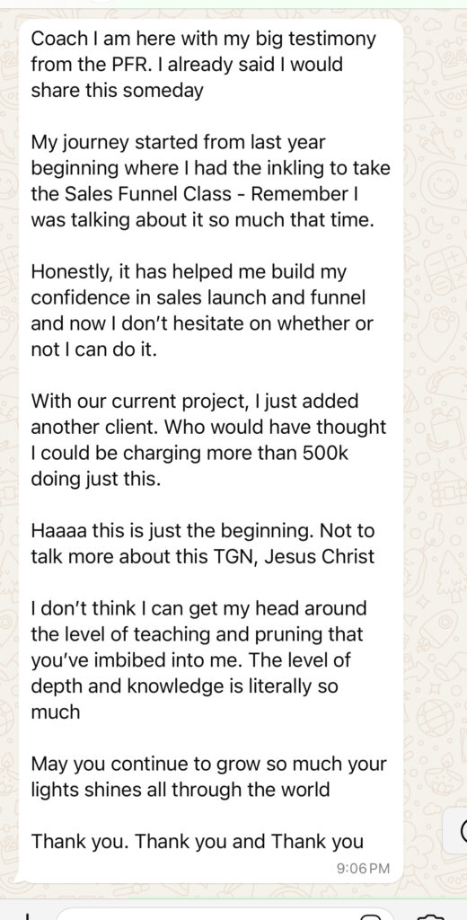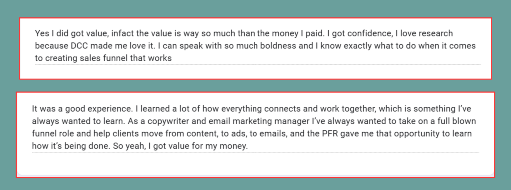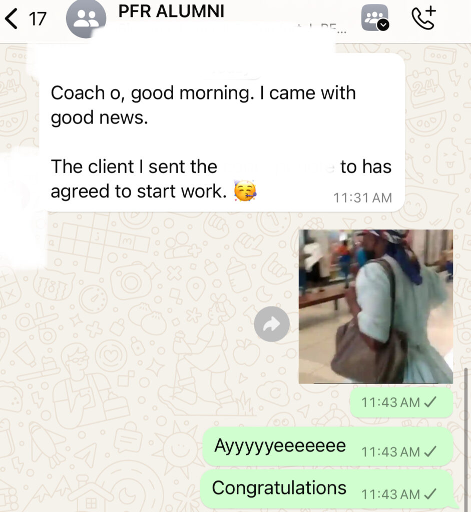 I especially love that PFR isn’t limited to the Nigerian market. I appreciate how you guided us through every possible way to implement this skill, regardless of the market or industry.