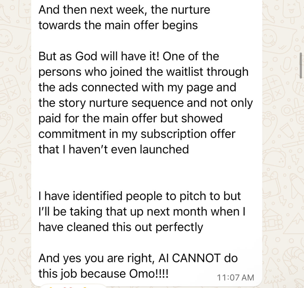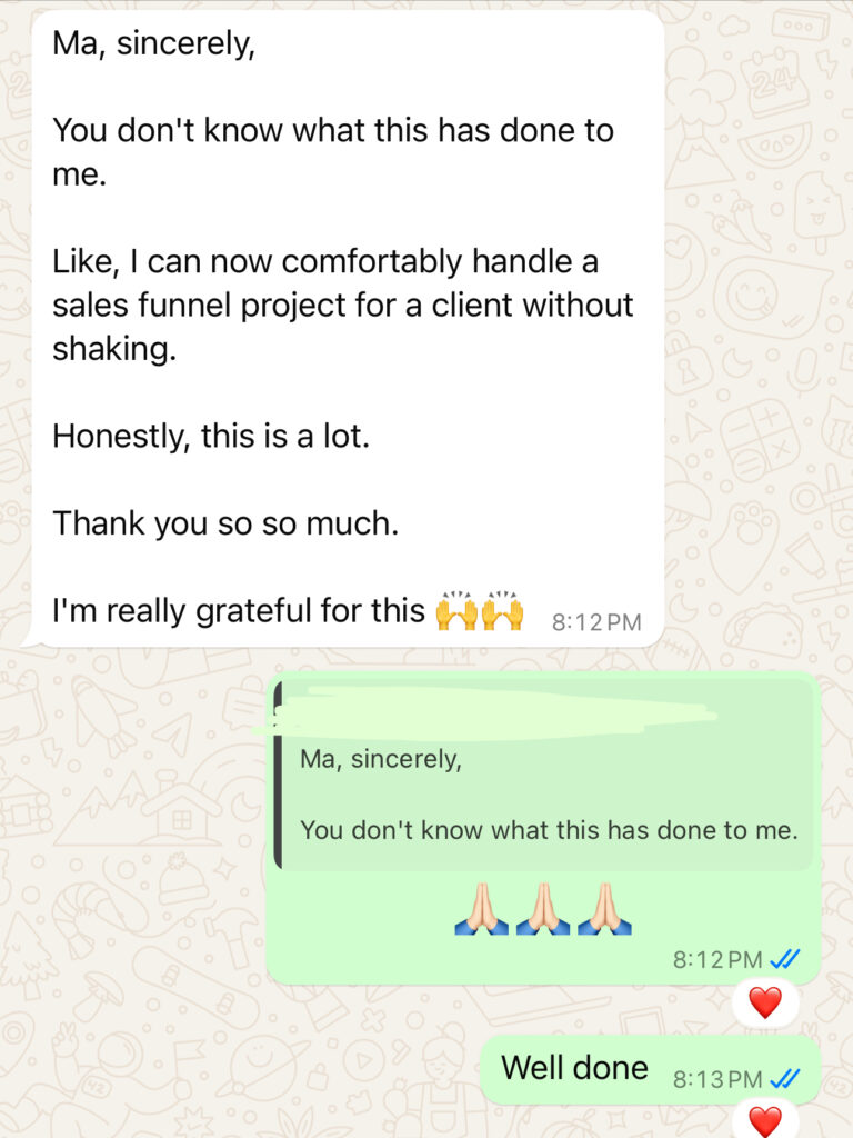 • Helped me earn in dollars working with international clients, crafting high-level sales funnel strategies, creating digital products, writing high-converting copy, building sales pages, and crafting email sequences.