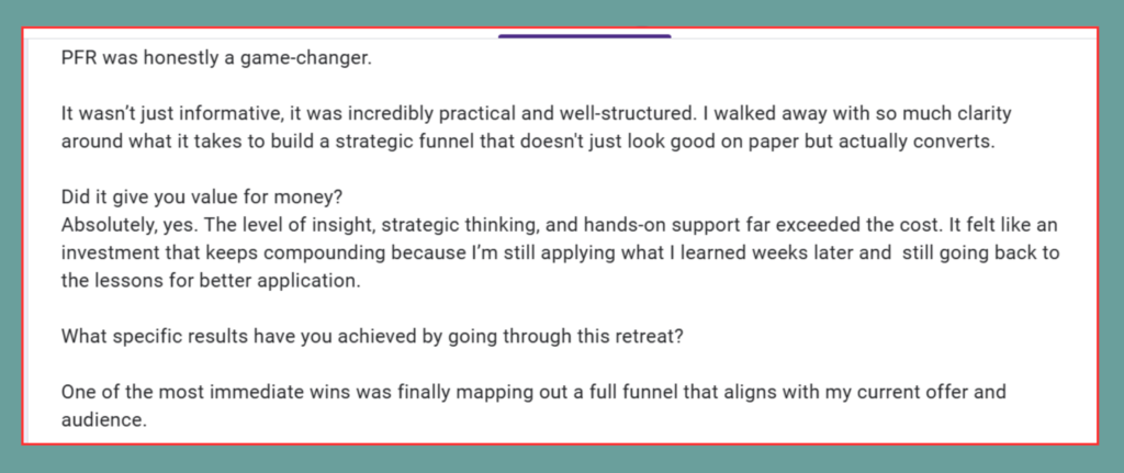 PFR helped me realize many mistakes in my previous understanding of sales funnels, and it’s been a game-changer.