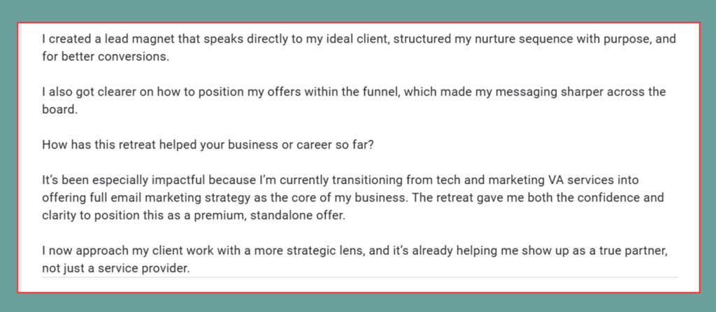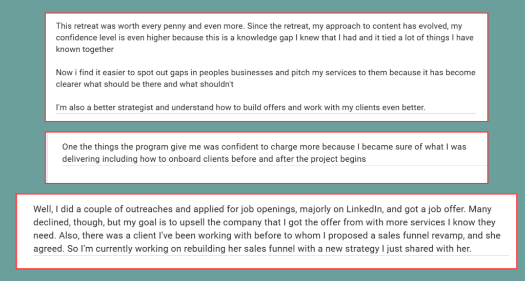 From COHORT 2 of the Profitable Funnel Retreat Participants